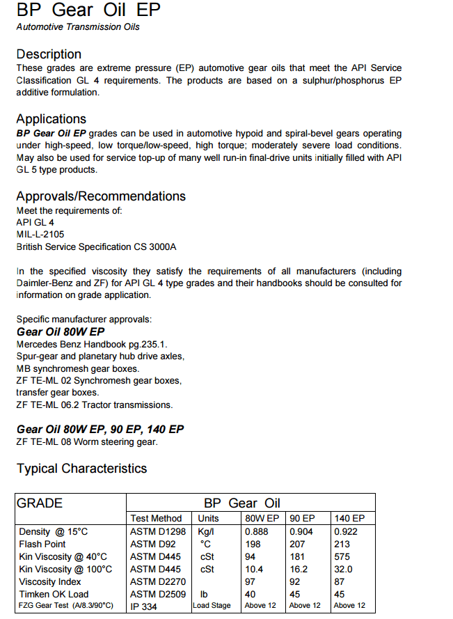 BP Gear Oil 140 EP、90 EP详细说明 (浏览889次)
